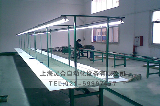 鋁合金帶燈架皮帶輸送設(shè)備廠內(nèi)組裝調(diào)試