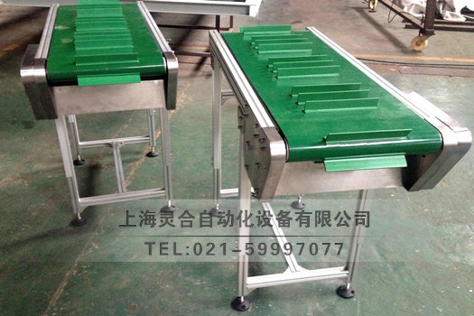 根據(jù)產(chǎn)品的尺寸要求在皮帶上加合適輸送物尺寸規(guī)格的檔板高度,間距等。