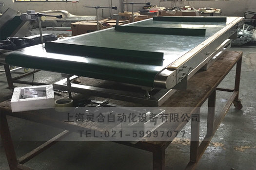 不銹鋼兩邊加檔板皮帶式輸送機(jī)通電測(cè)試