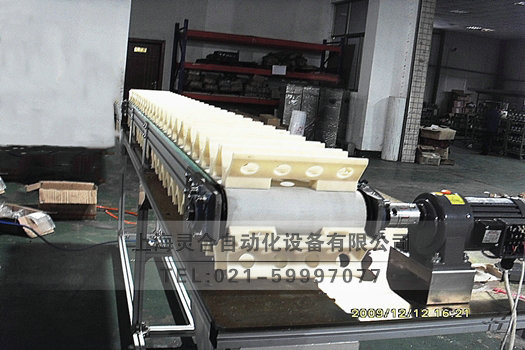 帶夾具的皮帶式輸送機,根據(jù)輸送物產(chǎn)品特性定制對應(yīng)尺寸的夾具輸送