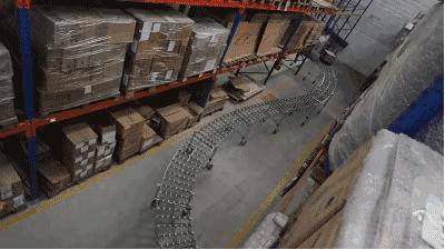 待打包發(fā)貨的倉庫物流裝卸福來輪伸縮輸送線