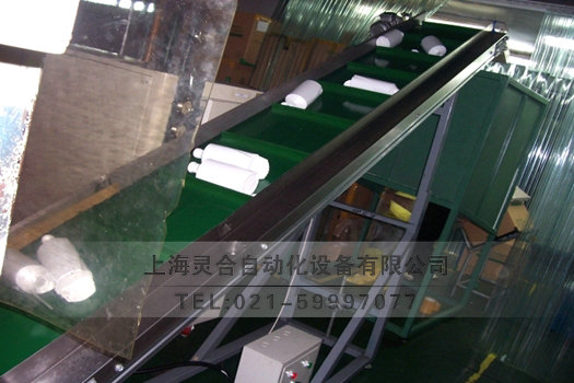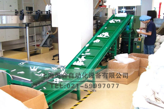 海飛絲瓶子爬坡皮帶輸送機(jī)客戶現(xiàn)場(chǎng)