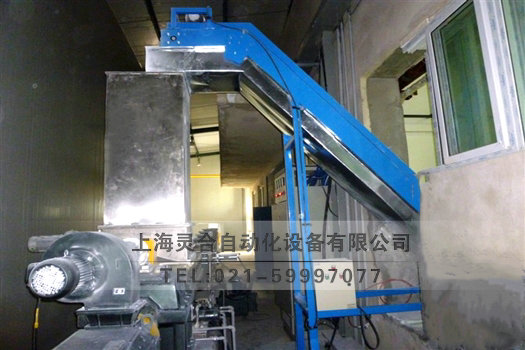 室內(nèi)物料輸送至室外加工爬坡皮帶輸送機(jī)