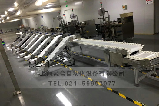 小零部件帶檔板爬坡皮帶輸送機(jī)客戶現(xiàn)場(chǎng)